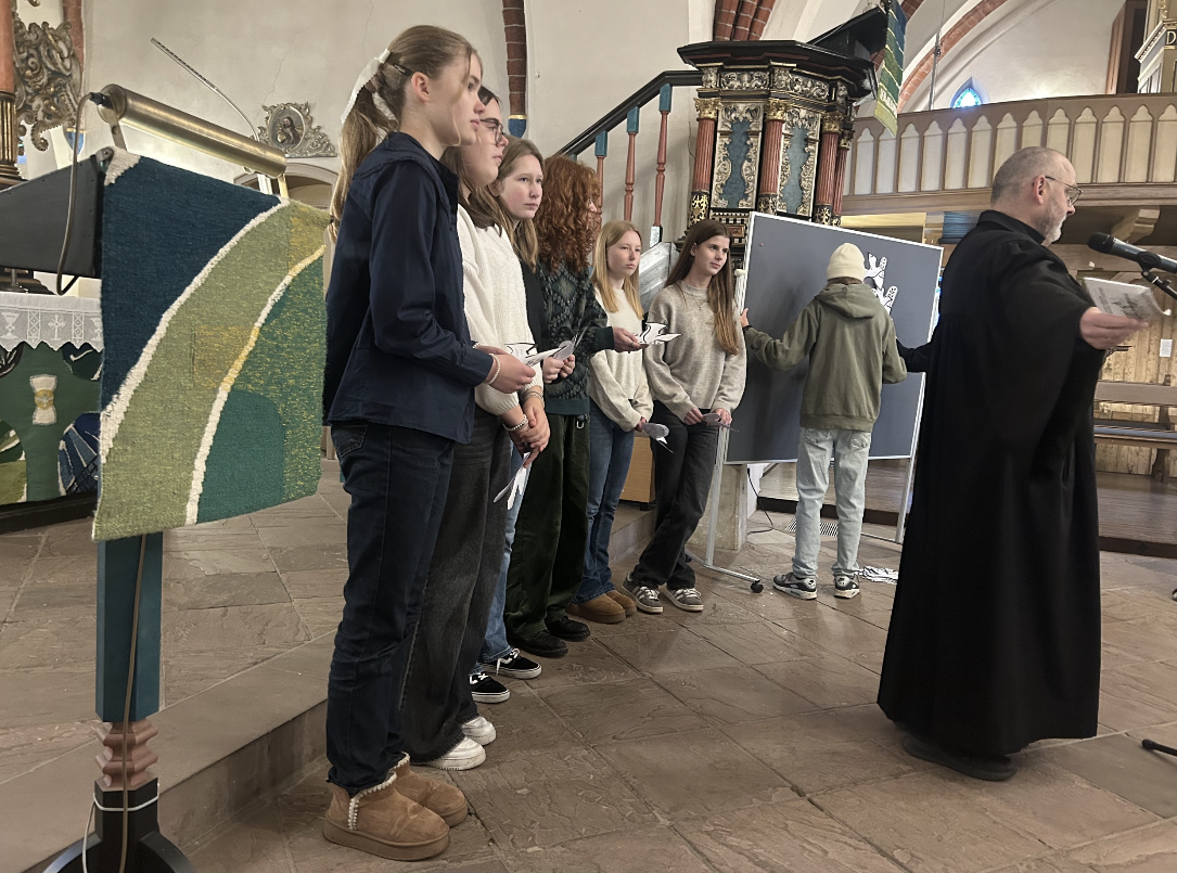Das Projekt Frieden ist eng mit der Gemeinde vernetzt. In Zusammenarbeit mit der Kommune, Vereinen, der Kirchengemeinde sowie externen Partnern, wie dem Volksbund entstehen Projekte, die über die Schule hinaus wirken. Auch ehemalige Schüler:innen bleiben dem Projekt verbunden und engagieren sich weiterhin. Es gibt zwei feste Treffen im Jahr mit der Politik.